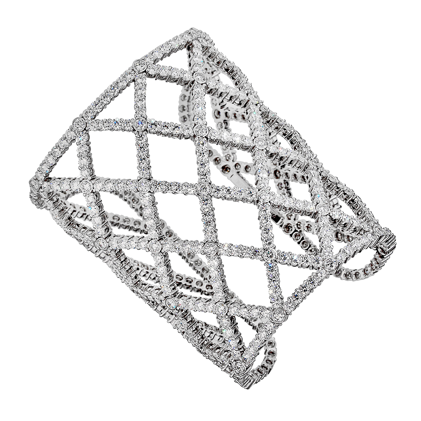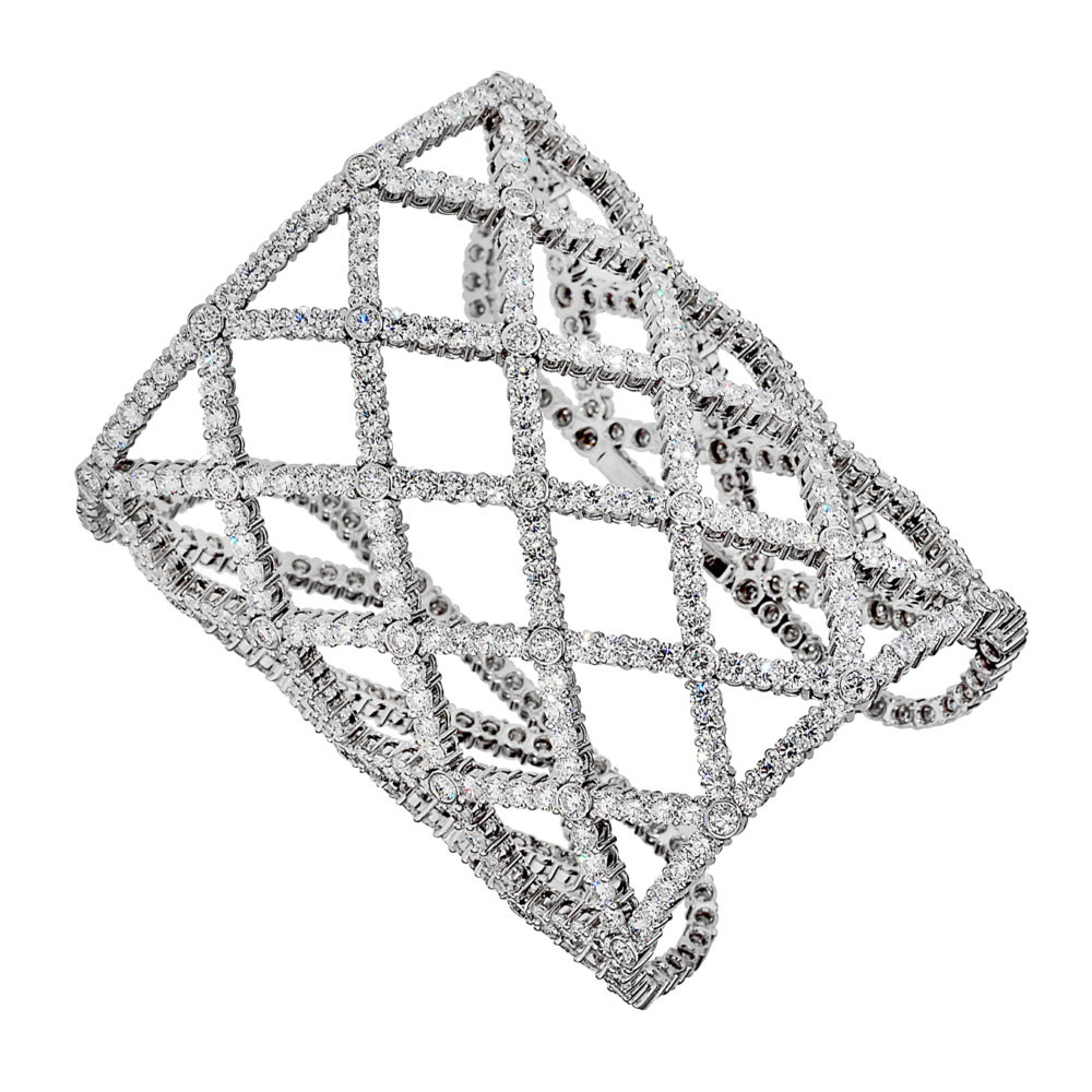 Of openwork design, set with 489 round brilliant cut diamonds.