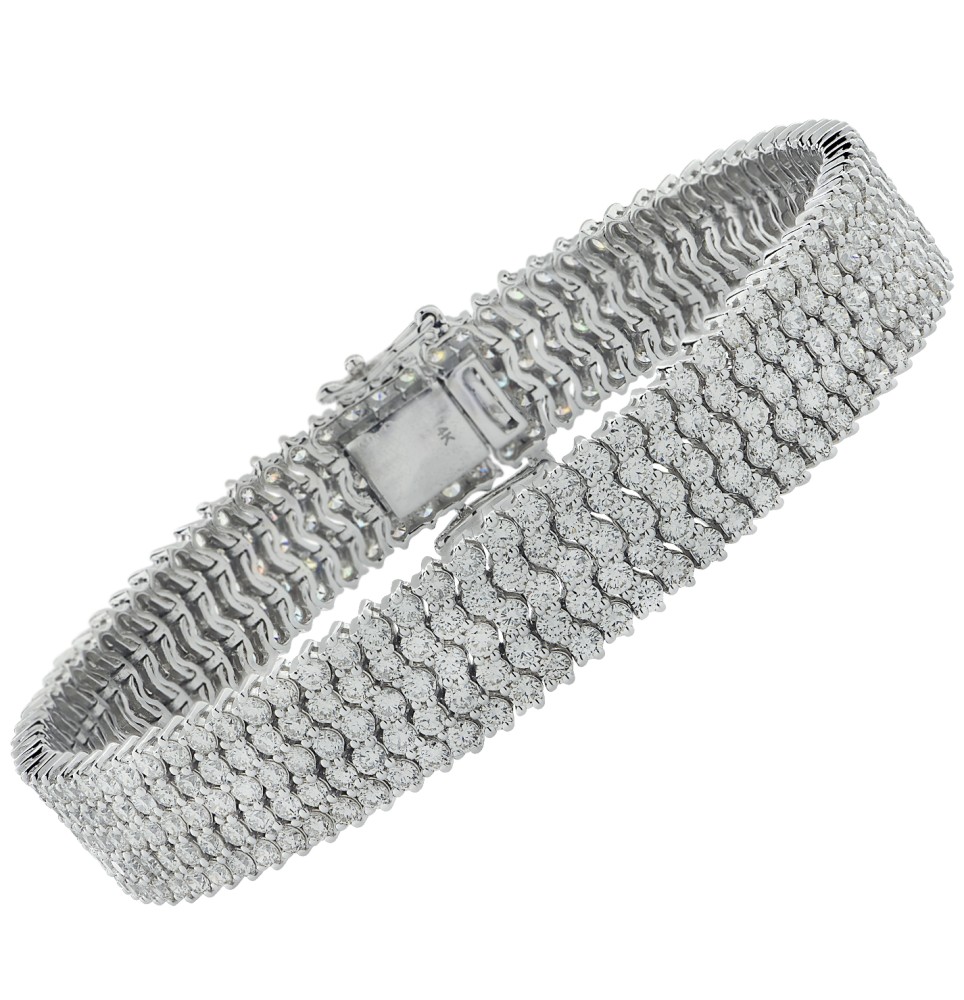 Set with 5 rows of 414 round brilliant-cut diamonds.