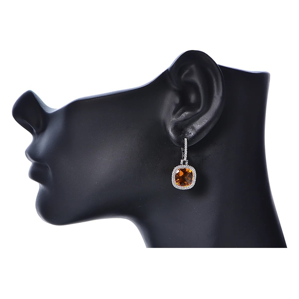 Each set with check board-cut citrine, accented by round brilliant-cut diamonds.