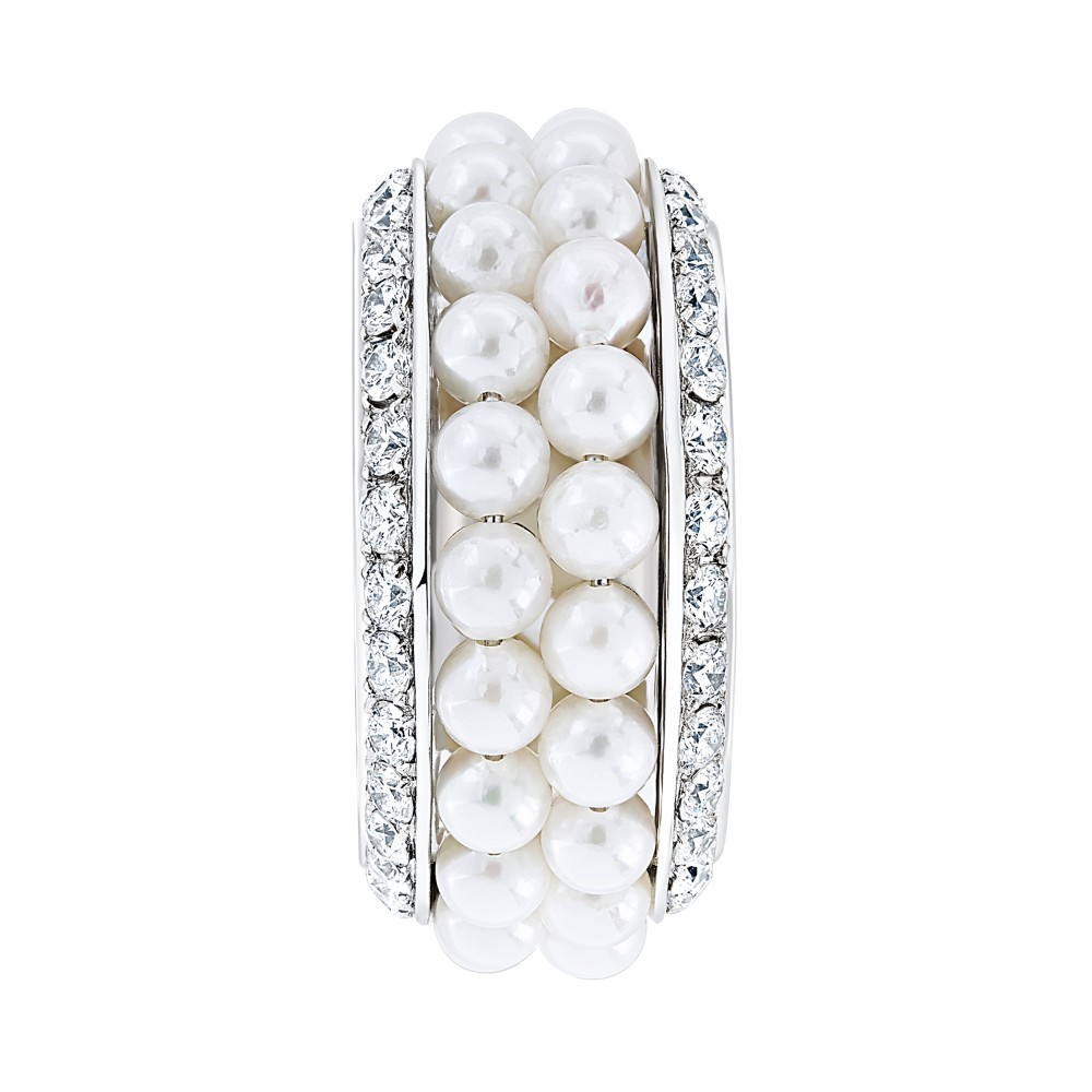 Featuring 2 rolls of cultured Akoya pearls, accented by round diamonds.