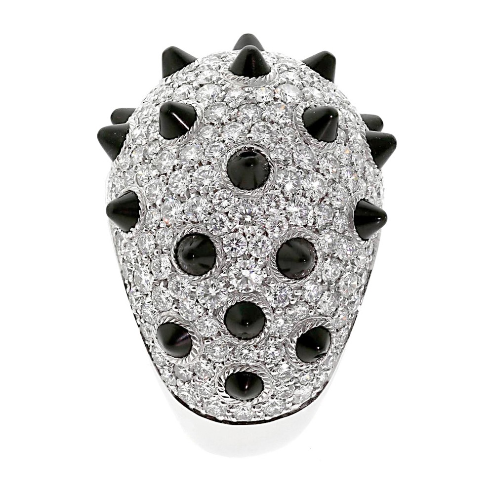 The ring designed as a pav? diamond dome featuring numerous onyx spikes.
