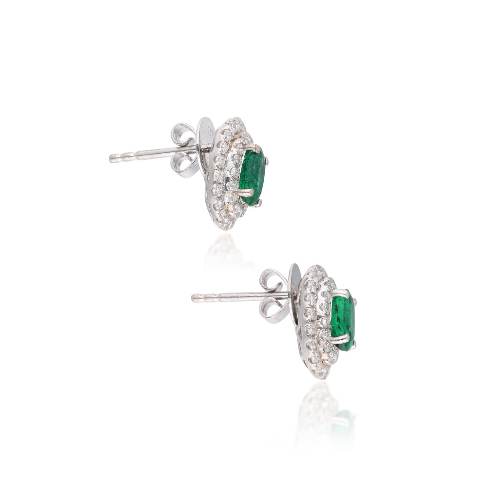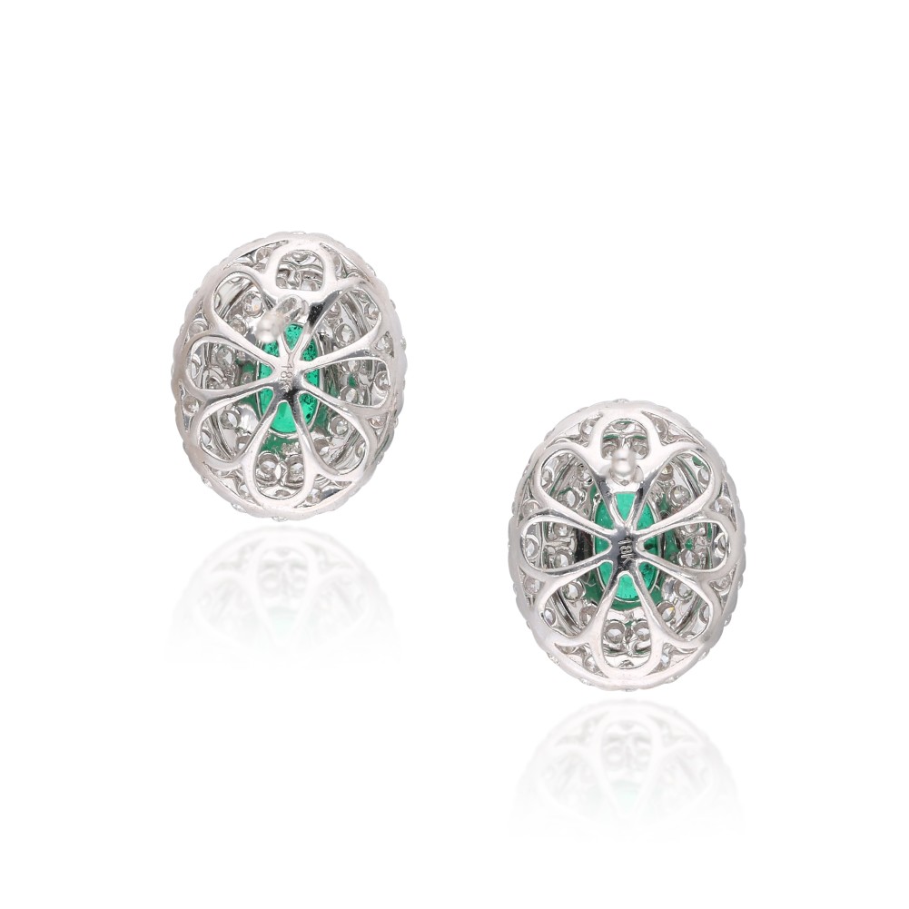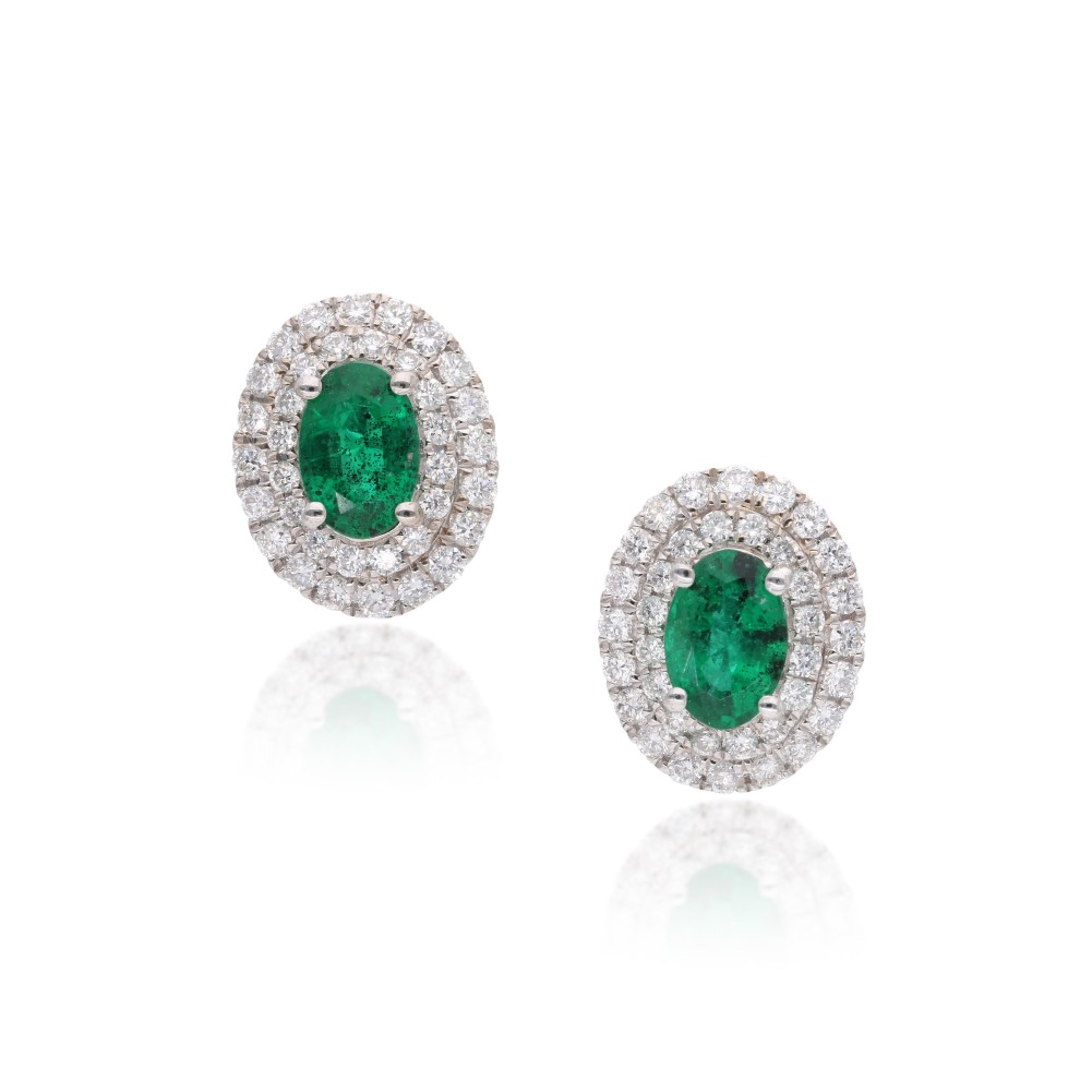 Set with 2 oval emeralds, accented by 74 round diamonds.