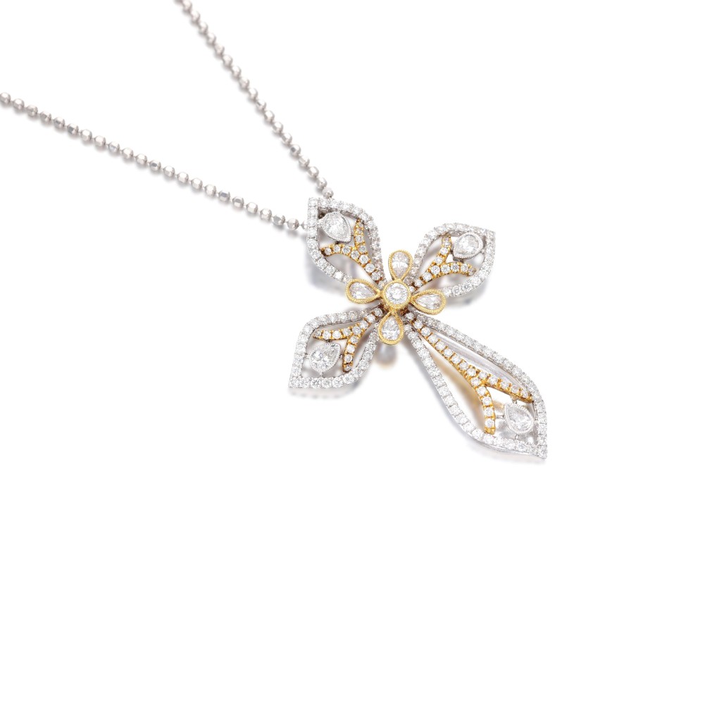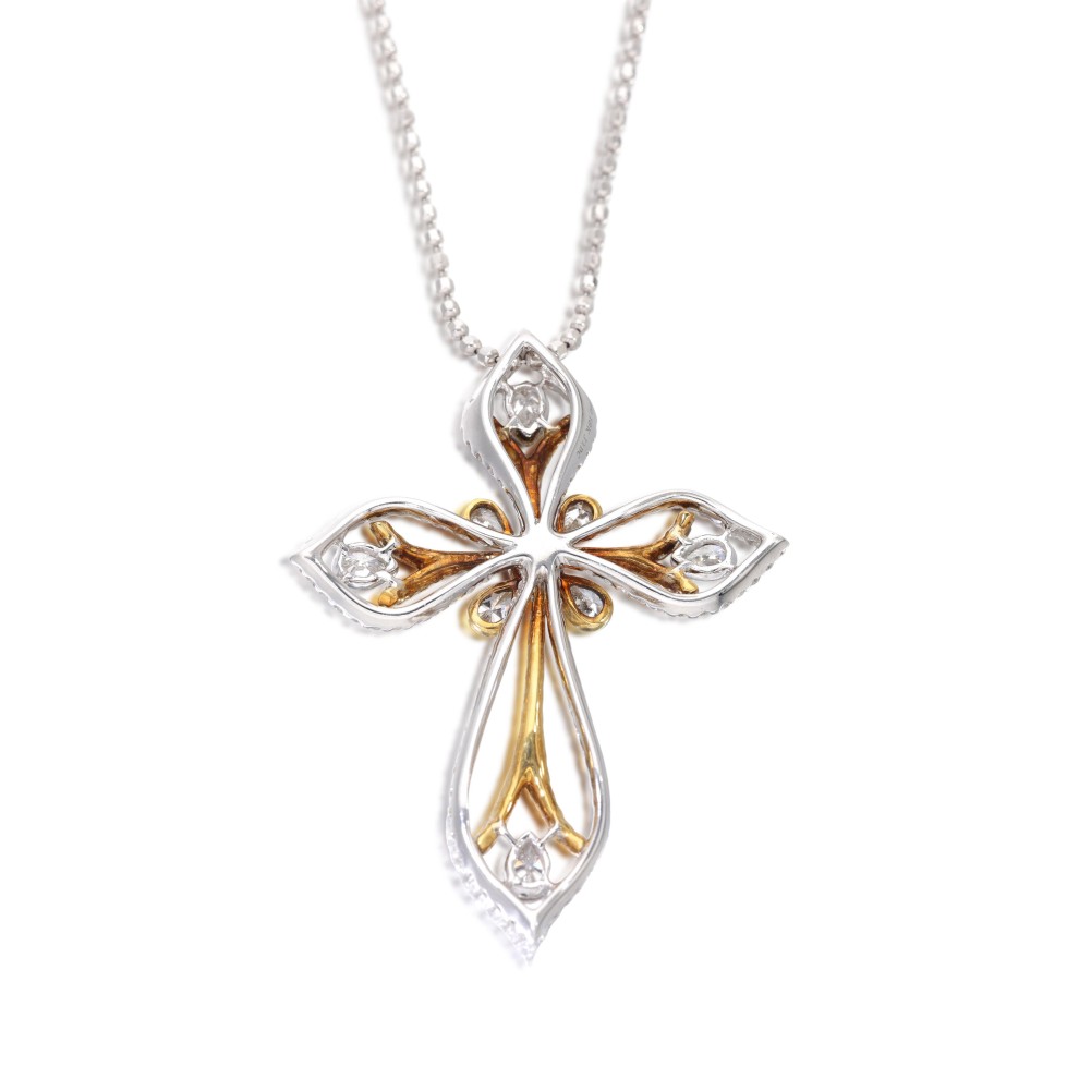 - 18 karat white and yellow gold pendant, 14 karat yellow gold chain