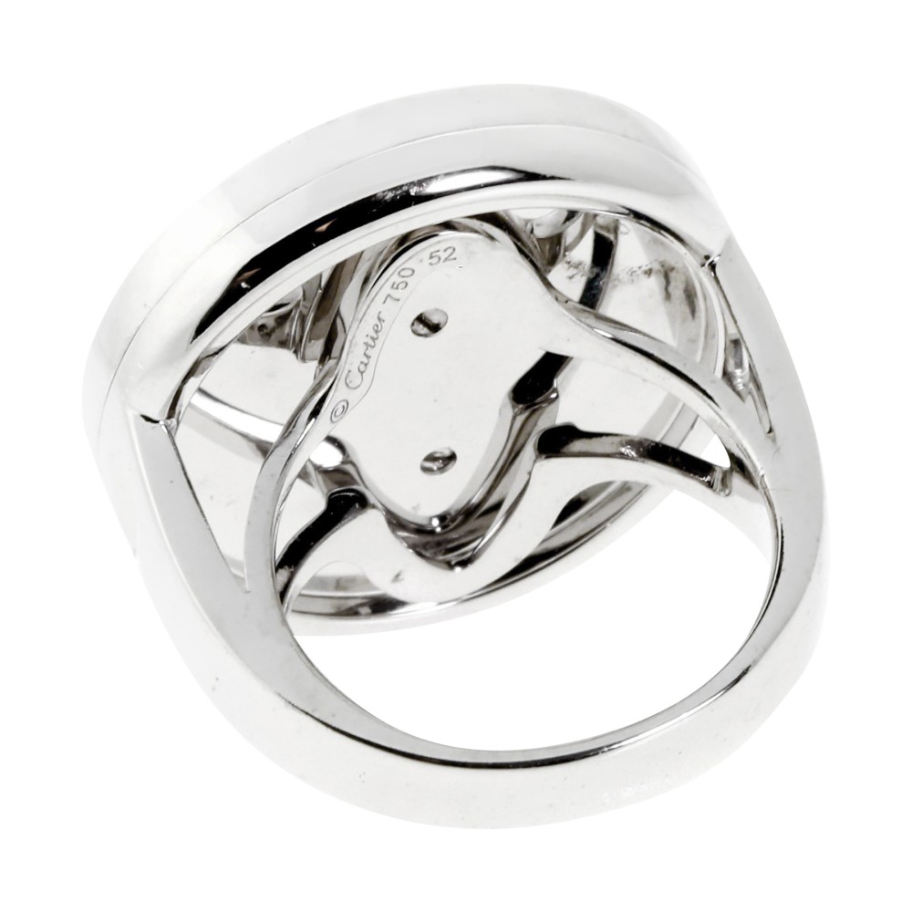 The ring displaying a grid of diamond set white gold bars, the spaces in between inlaid with mother of pearl.