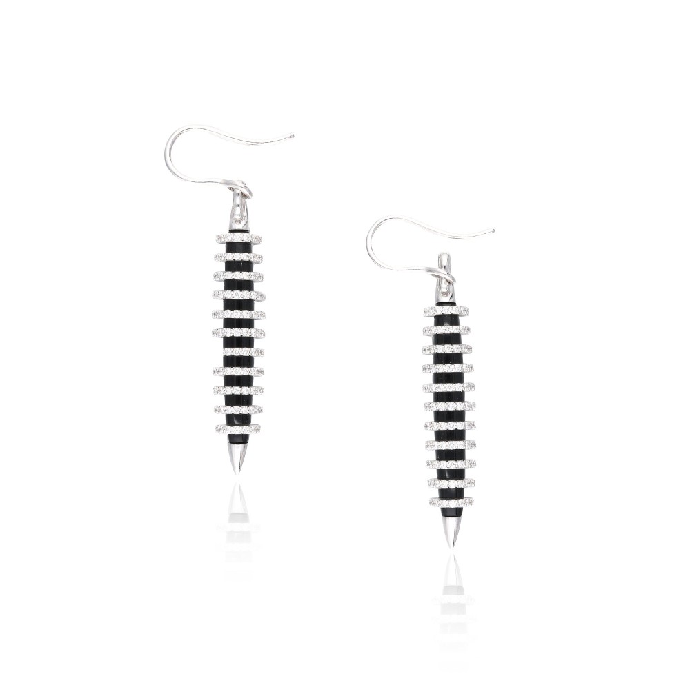 Composed of onyx and round brilliant-cut diamonds.