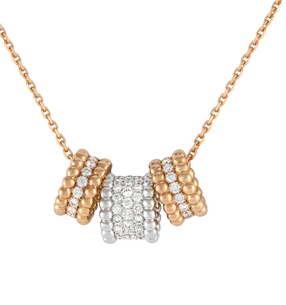Of the iconic Perl?e collection, composed of three sliders, set with round brilliant-cut diamonds.