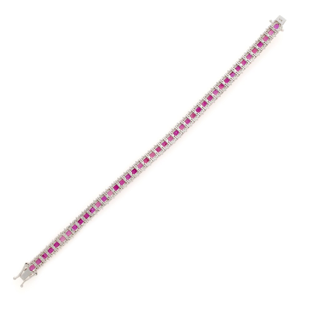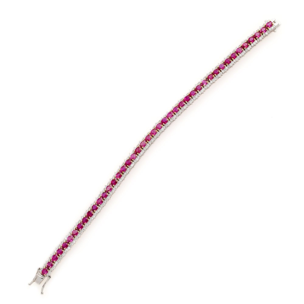 Composed of oval-shaped rubies and round brilliant-cut diamonds.