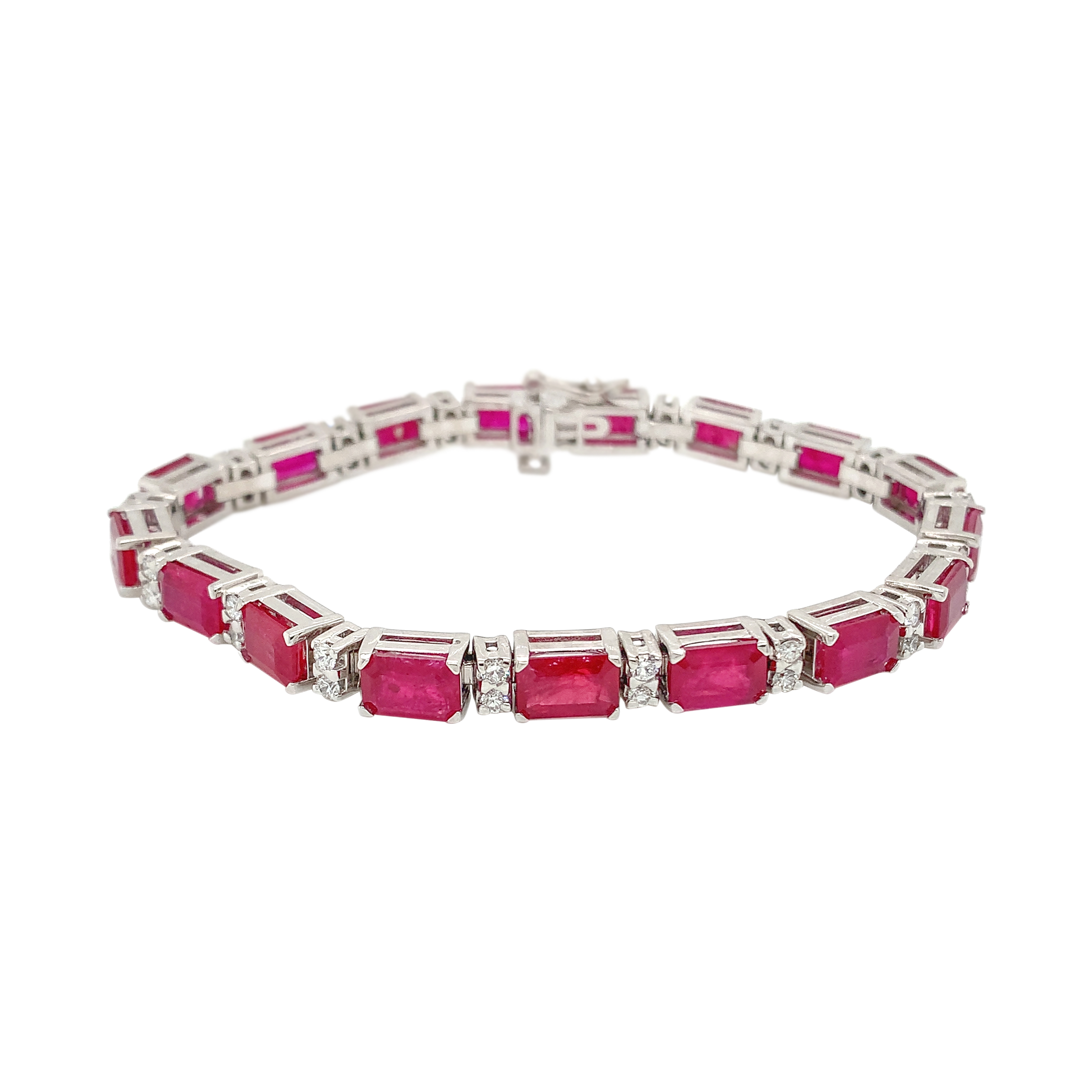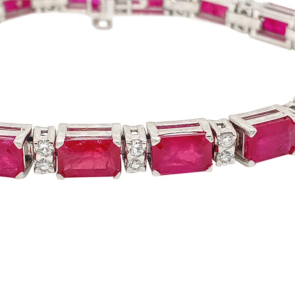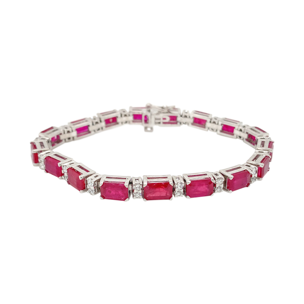 Featuring 17 emerald cut rubies, accented by 32 round brilliant cut diamonds.