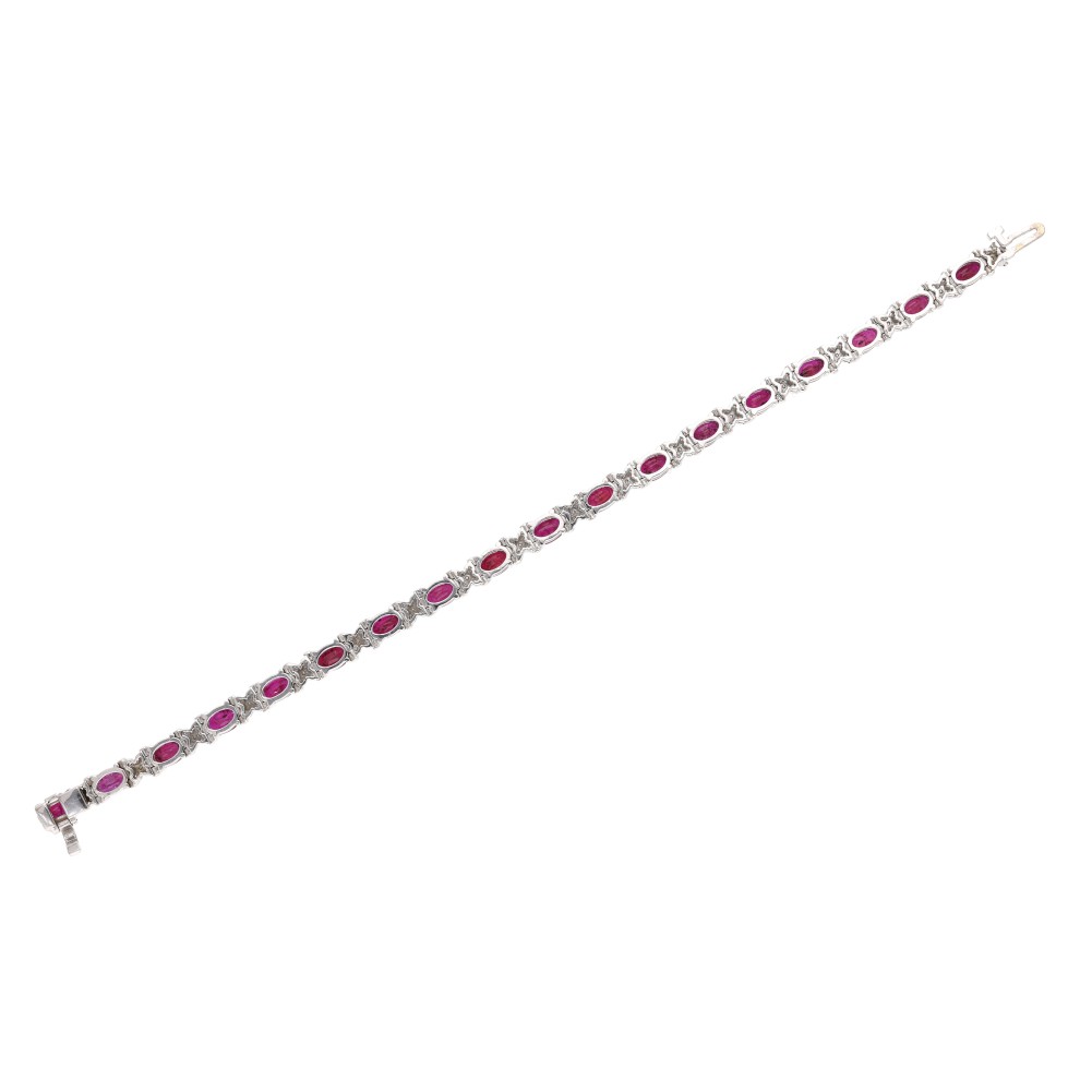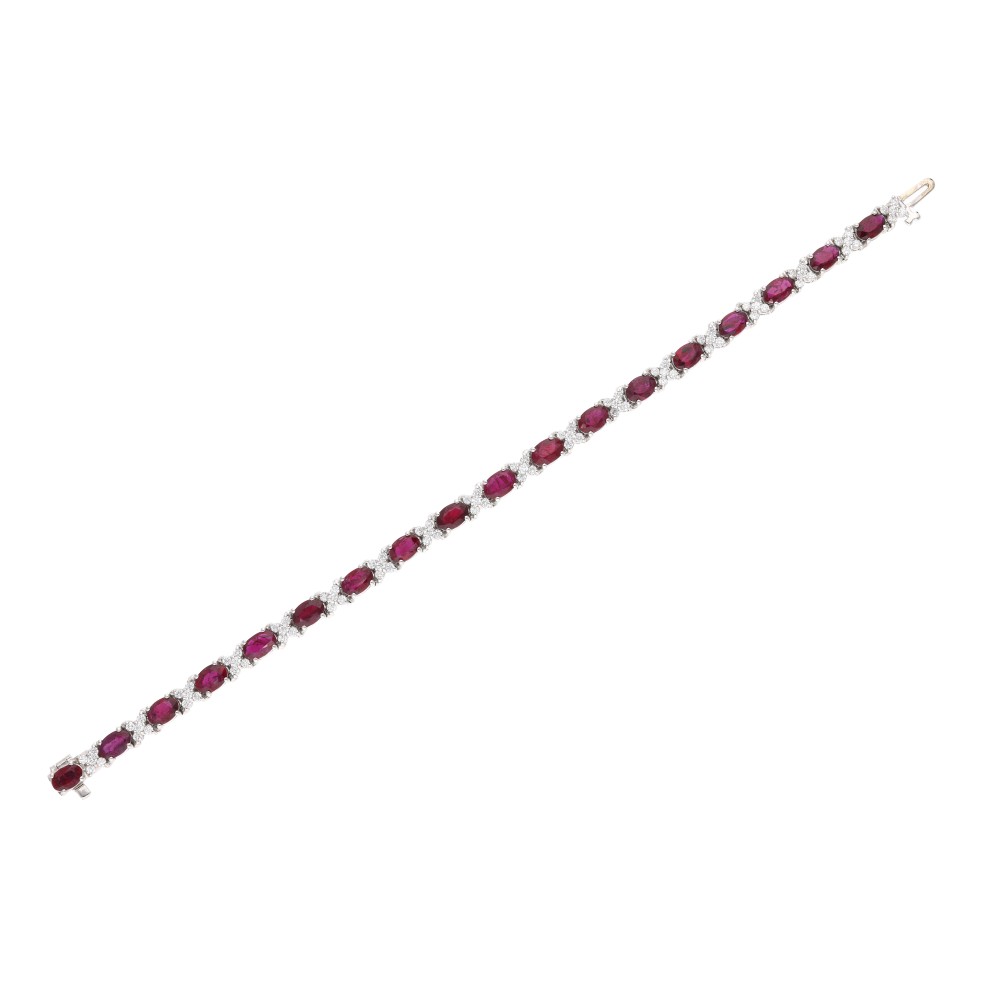Set with 18 oval-shaped rubies, accented by round diamonds.