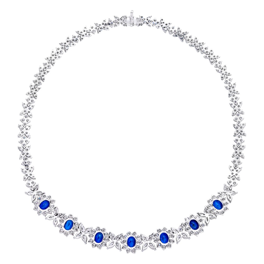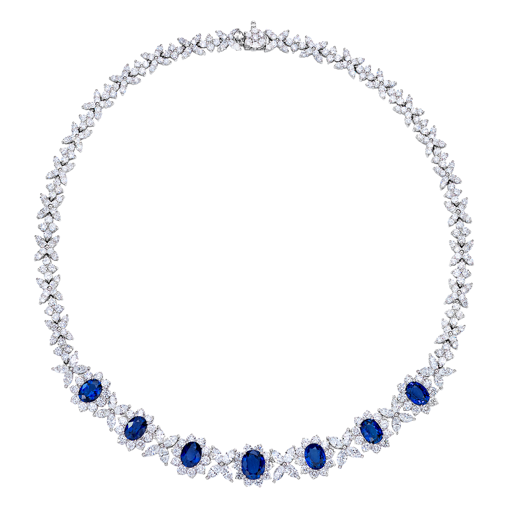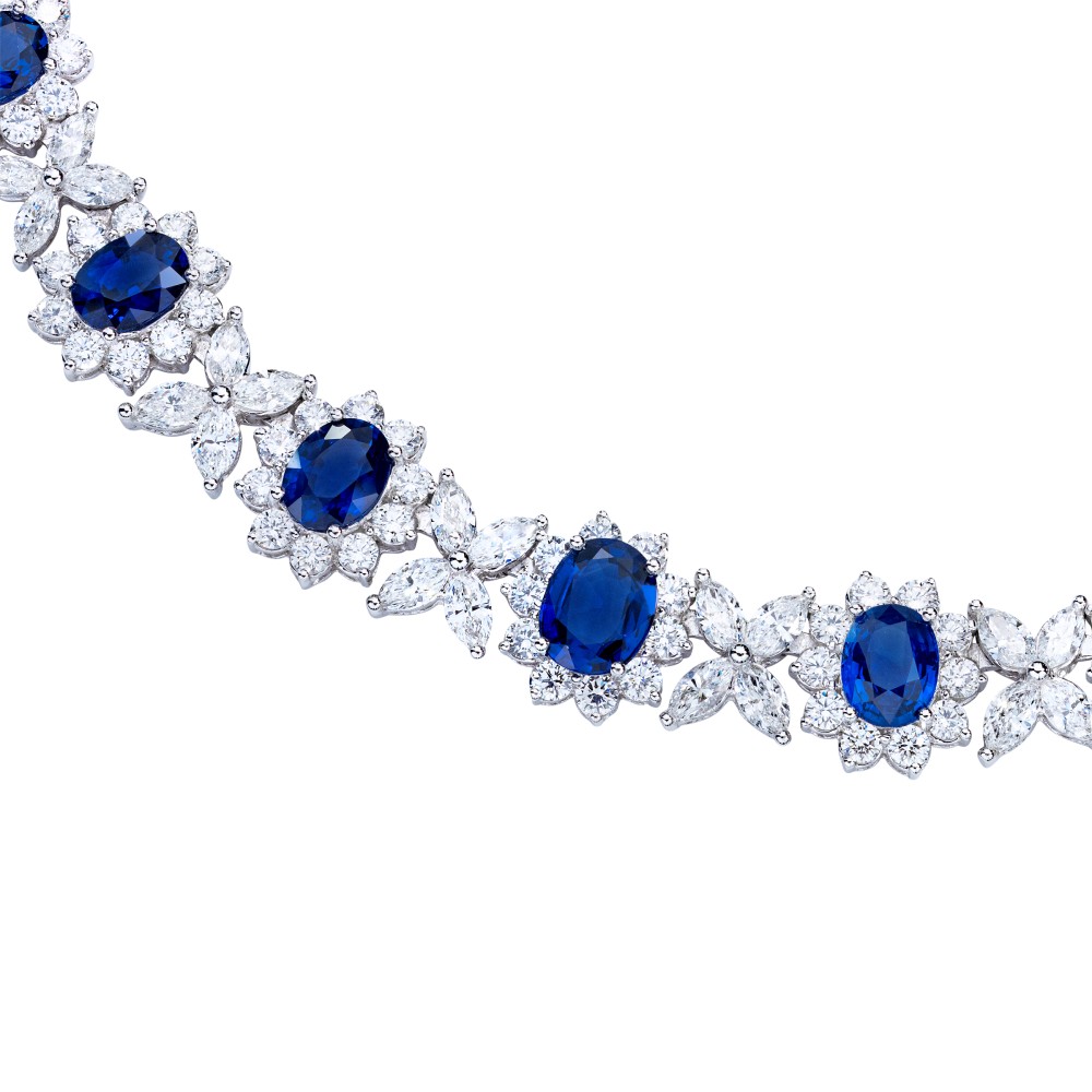 Set with oval sapphires alternating with round and marquise-shaped diamonds.