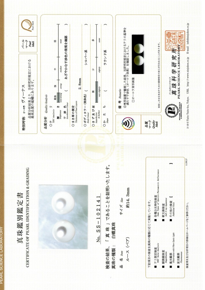 - Cultured South Sea pearls measure 14.5 and 14.6mm