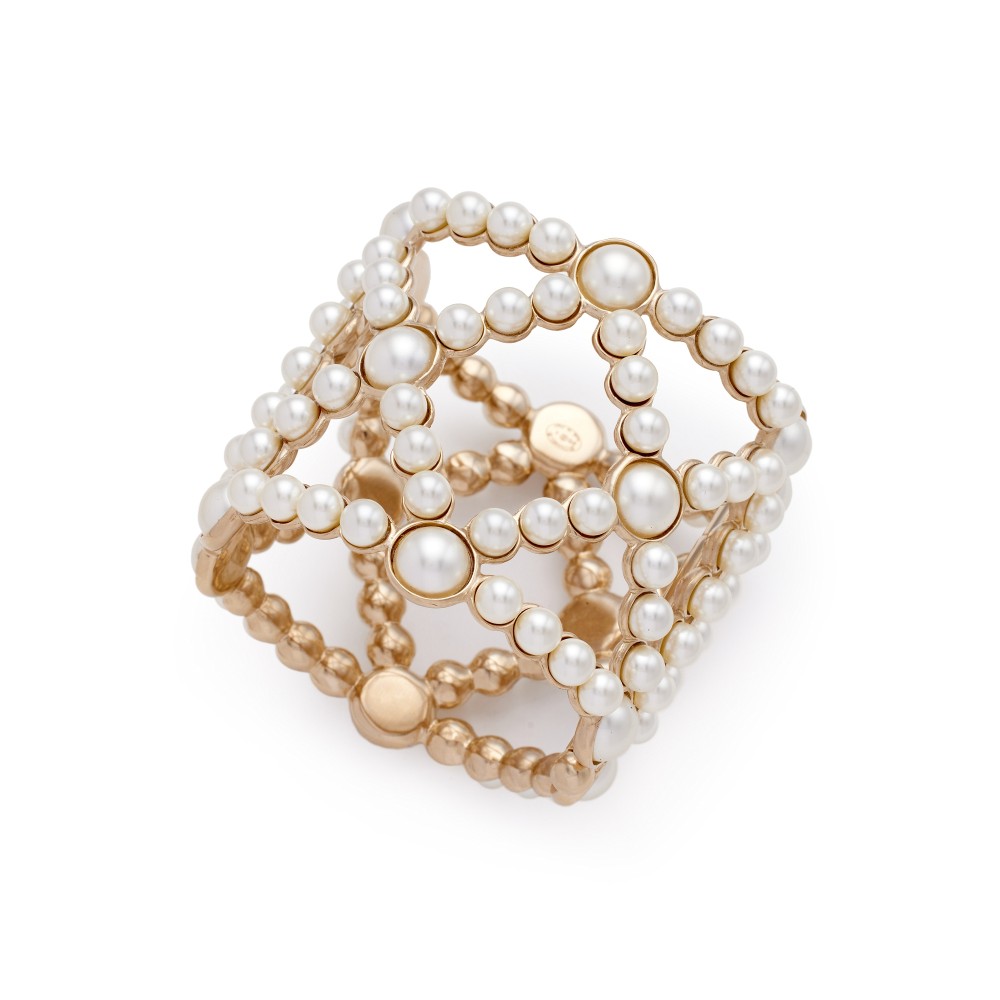 Chanel White Imitation Pearl and Gold Metal Cuff Bracelet, 2015
