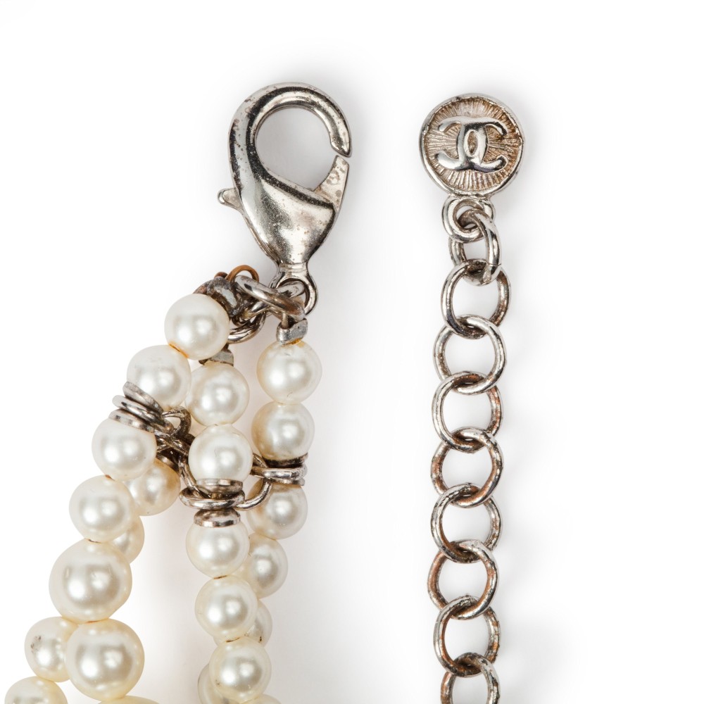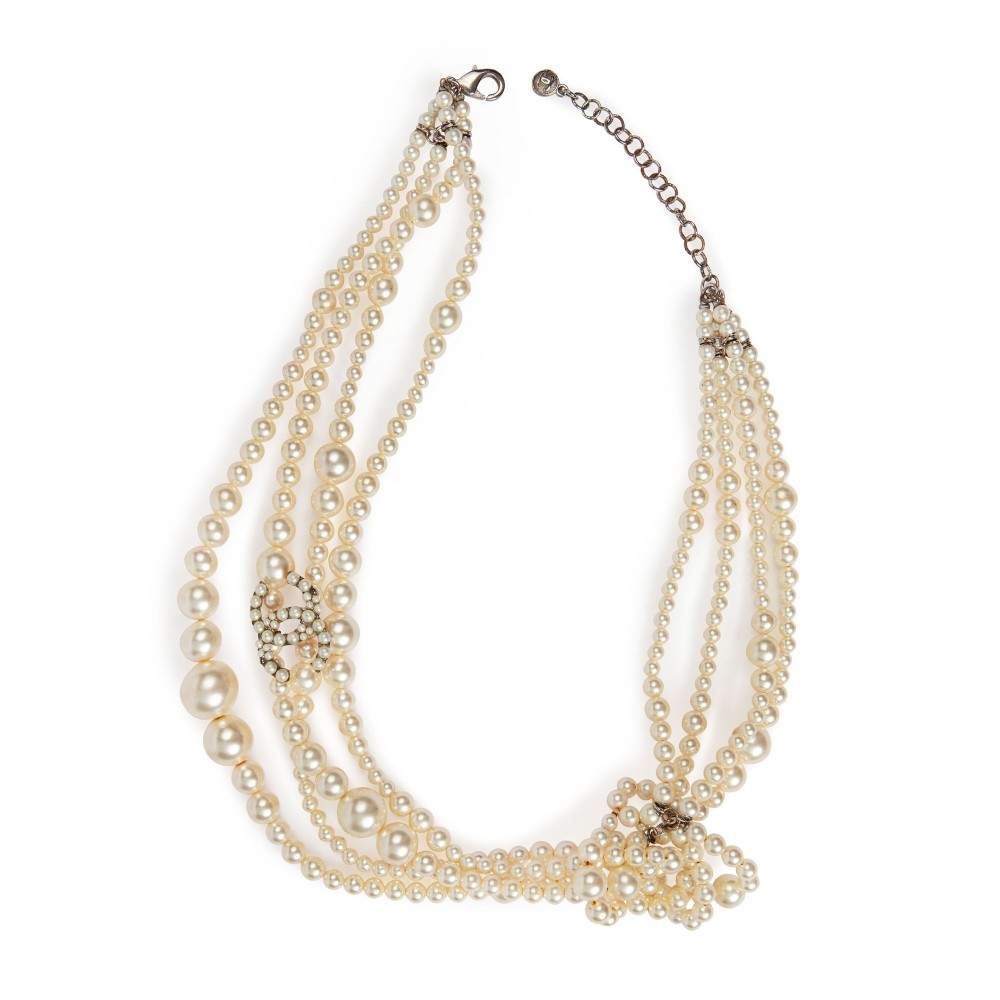 Chanel White Imitation Pearl CC Multistrand Necklace, 2014