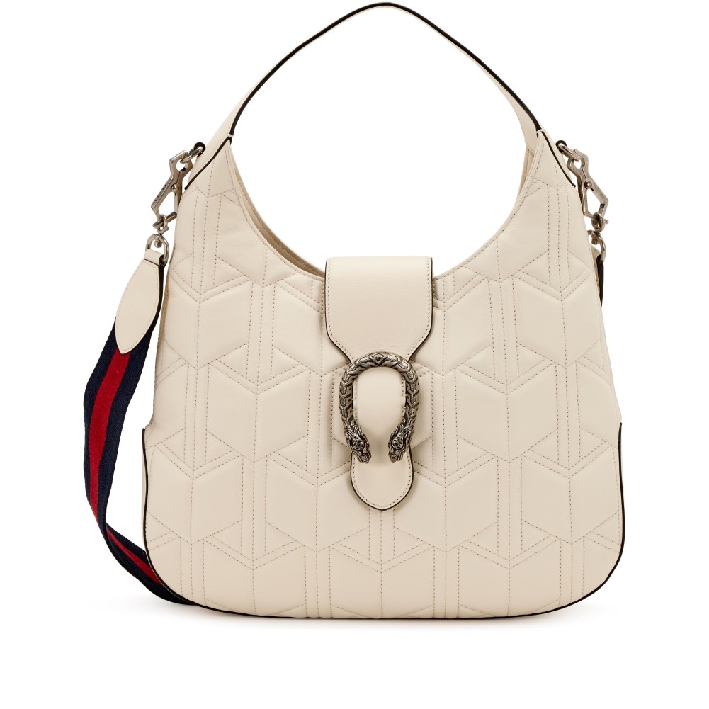 Gucci White Matelasse Leather Large Dionysus Hobo Silver Hardware