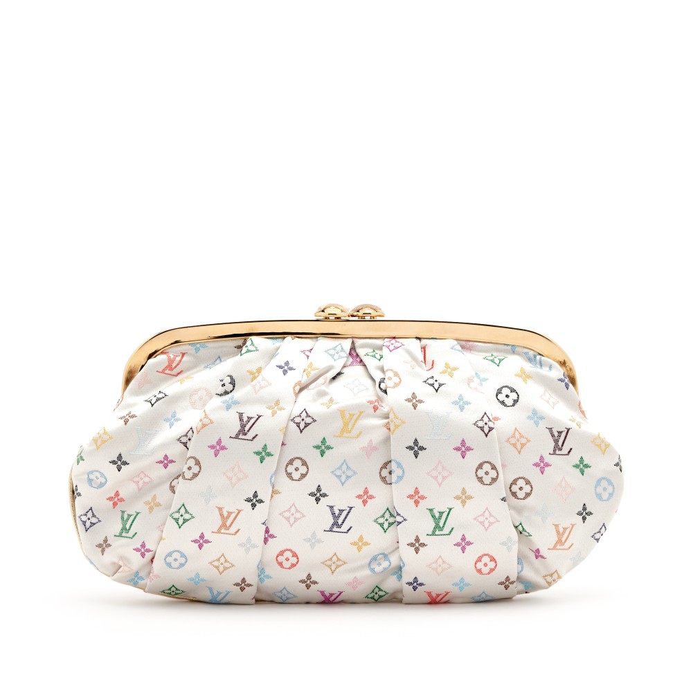 Louis Vuitton White Multicolor Satin Monogram Aumoniere Clutch, 2006