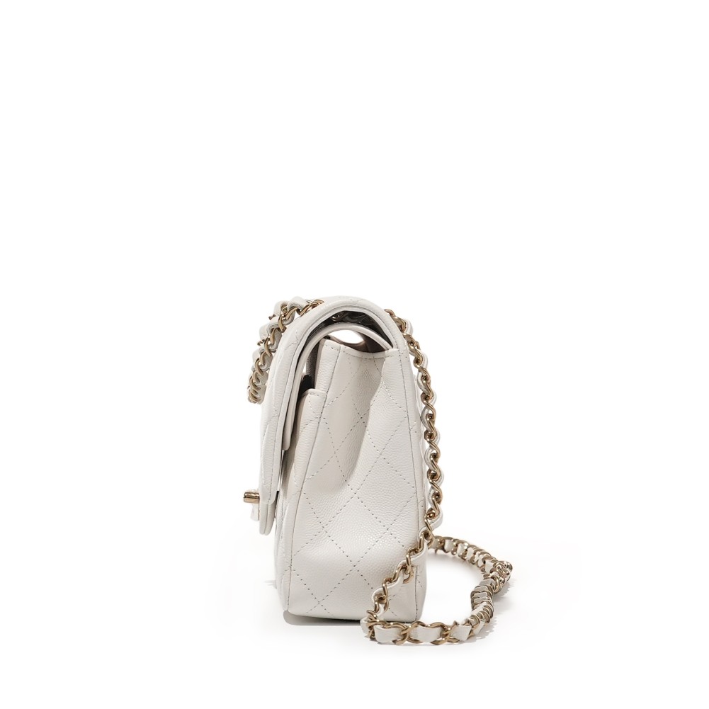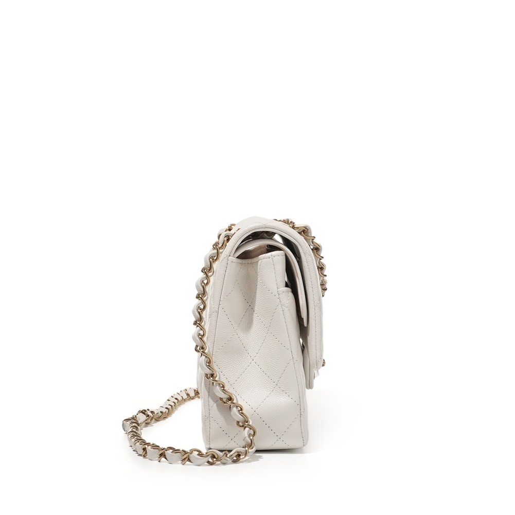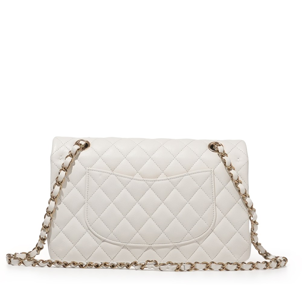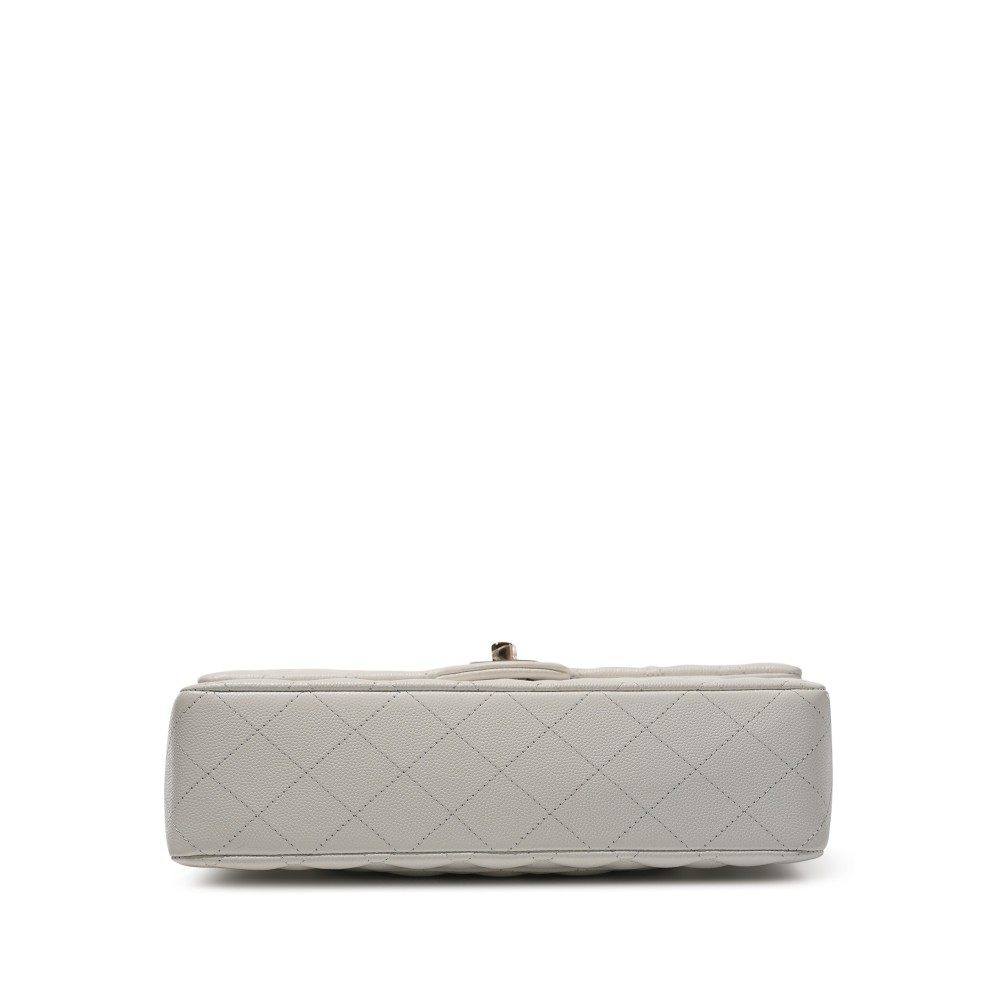 Chanel White Quilted Caviar Classic Medium Double Flap Bag Pale Gold Hardware