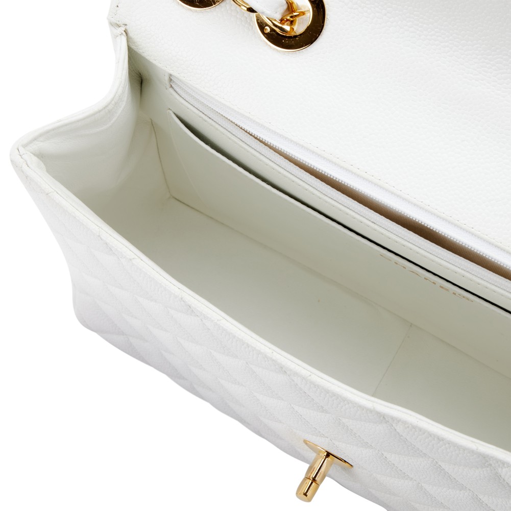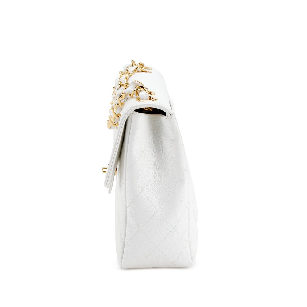 Chanel White Quilted Caviar Jumbo Classic Single Flap Gold Hardware, 1996-1997