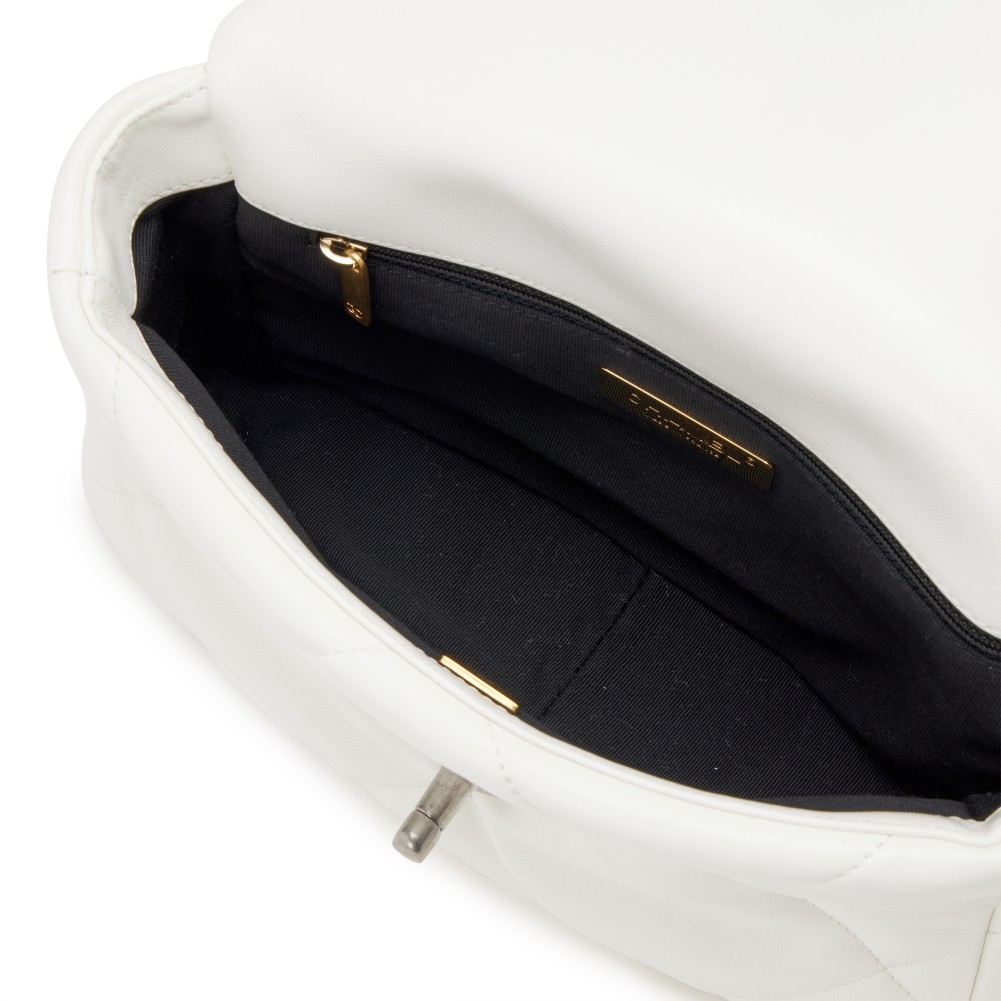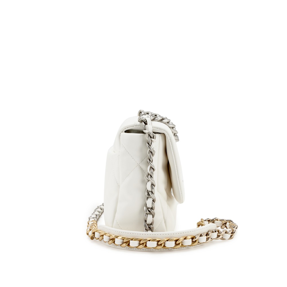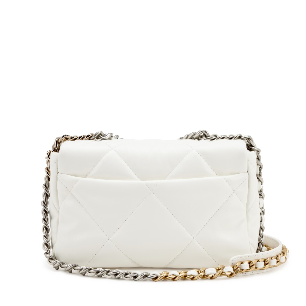White Quilted Goatskin Medium 19 Flap Brushed Gold and Silver Hardware, 2022