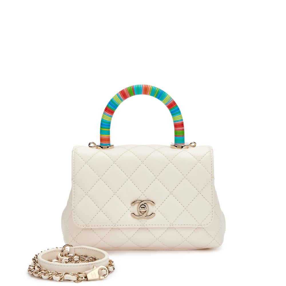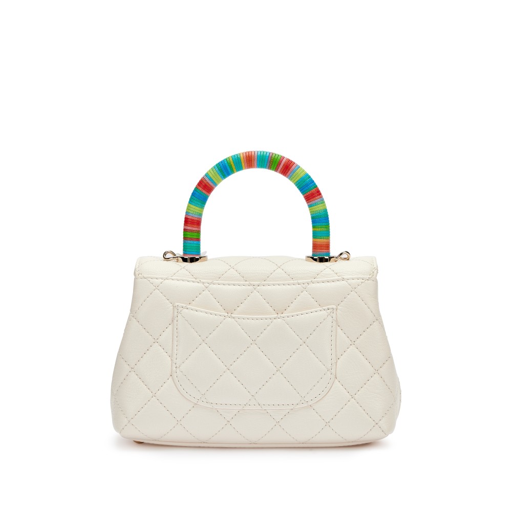 Chanel White Quilted Lambskin Mini Rainbow Coco Top Handle Pale Gold Hardware, 2021