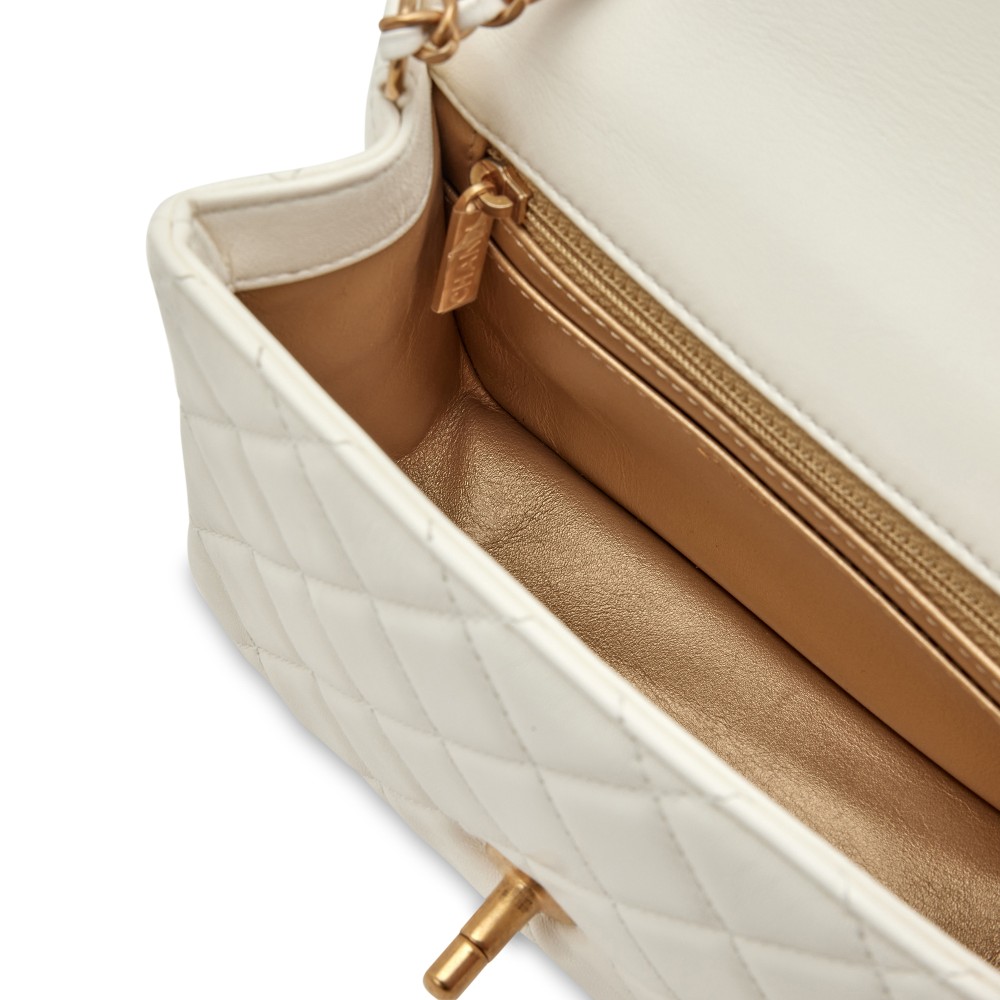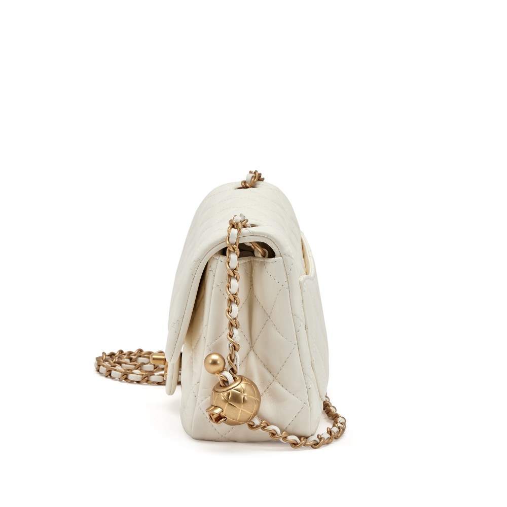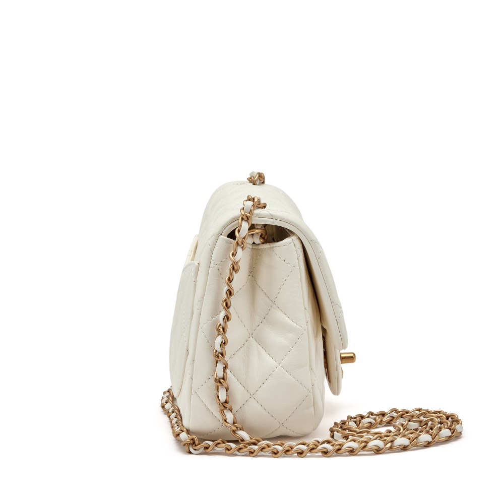 Chanel White Quilted Lambskin Mini Square Pearl Crush Flap Brushed Gold Hardware, 2022