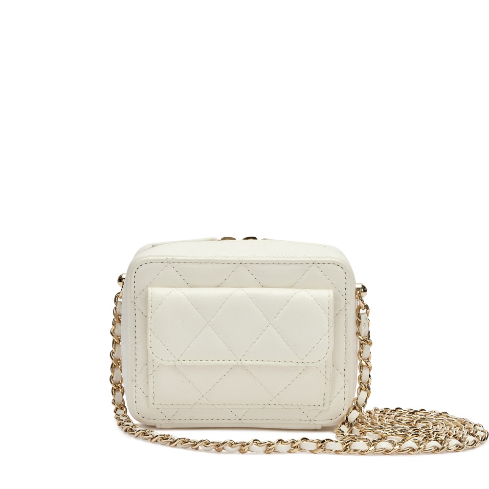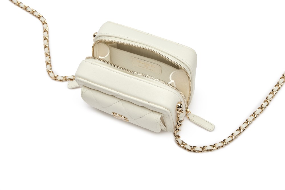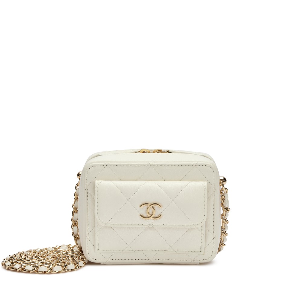 Chanel White Quilted Lambskin Mini Vanity Gold Hardware