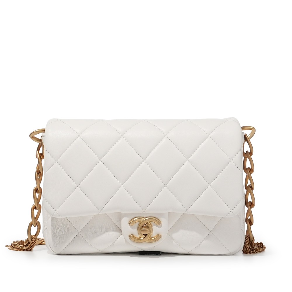Chanel White Quilted Lambskin Shoulder Flap Bag Gold Hardware, 2023