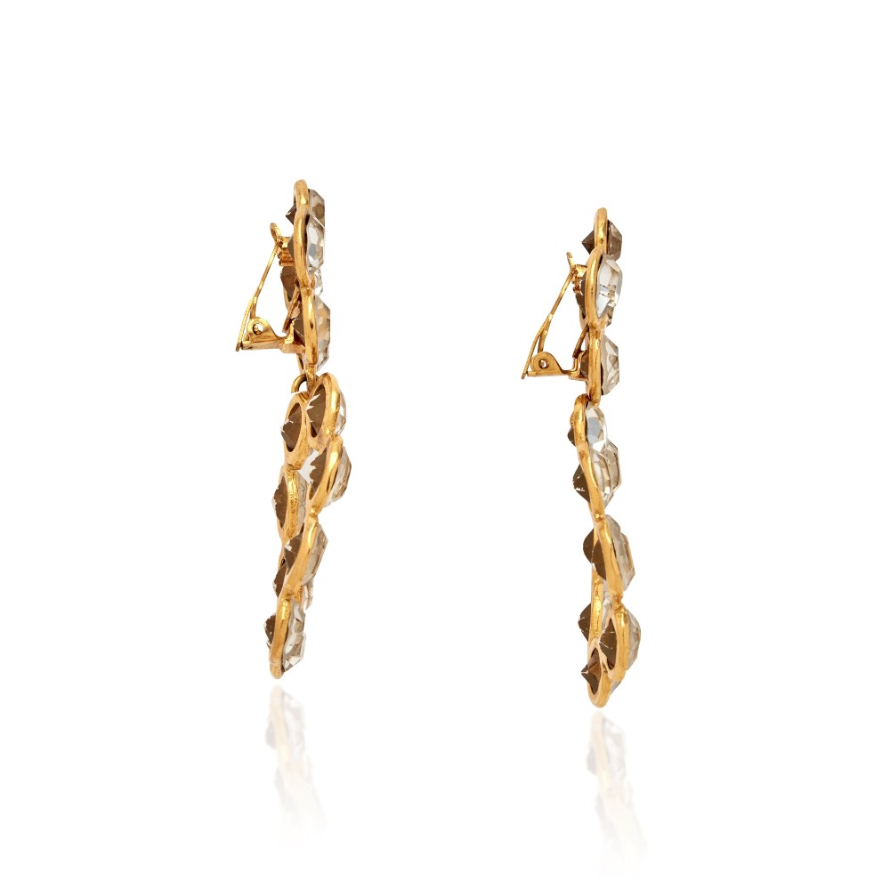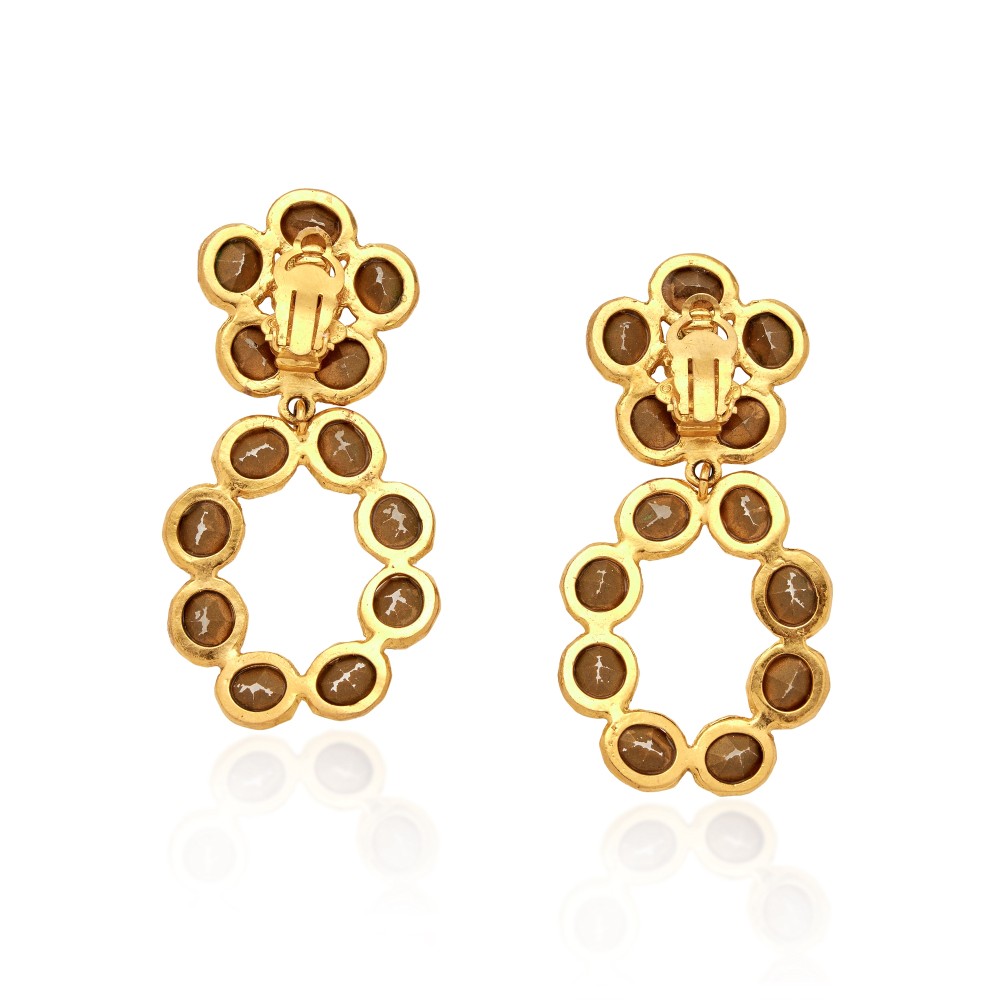 Chanel White Strass and Gold Metal Flower Drop Hoop Earrings, 1990s