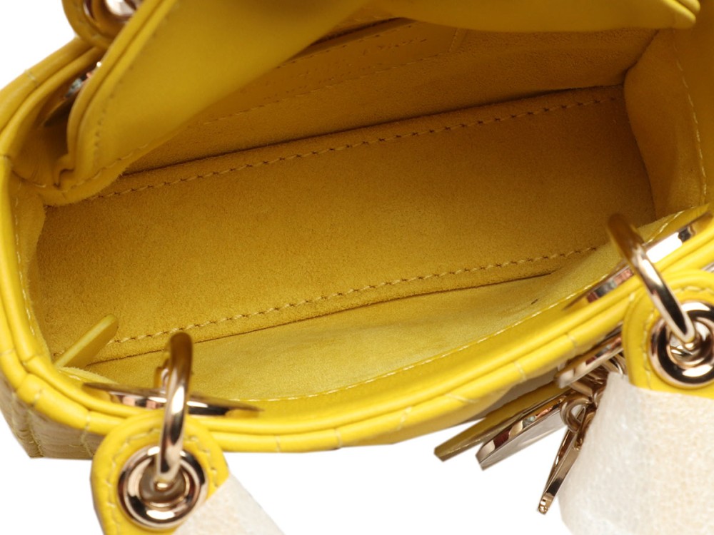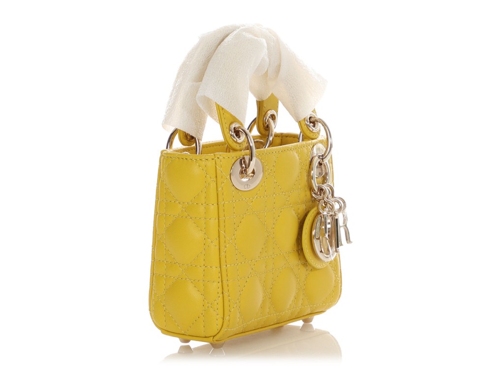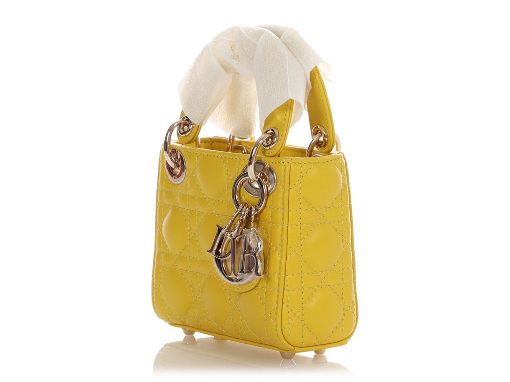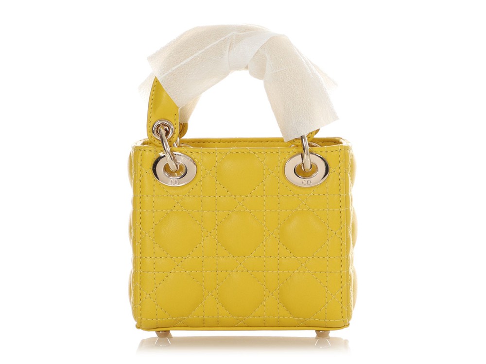 Dior Yellow Cannage-Quilted Lambskin Lady Dior Micro Bag Light Gold Hardware, 2021