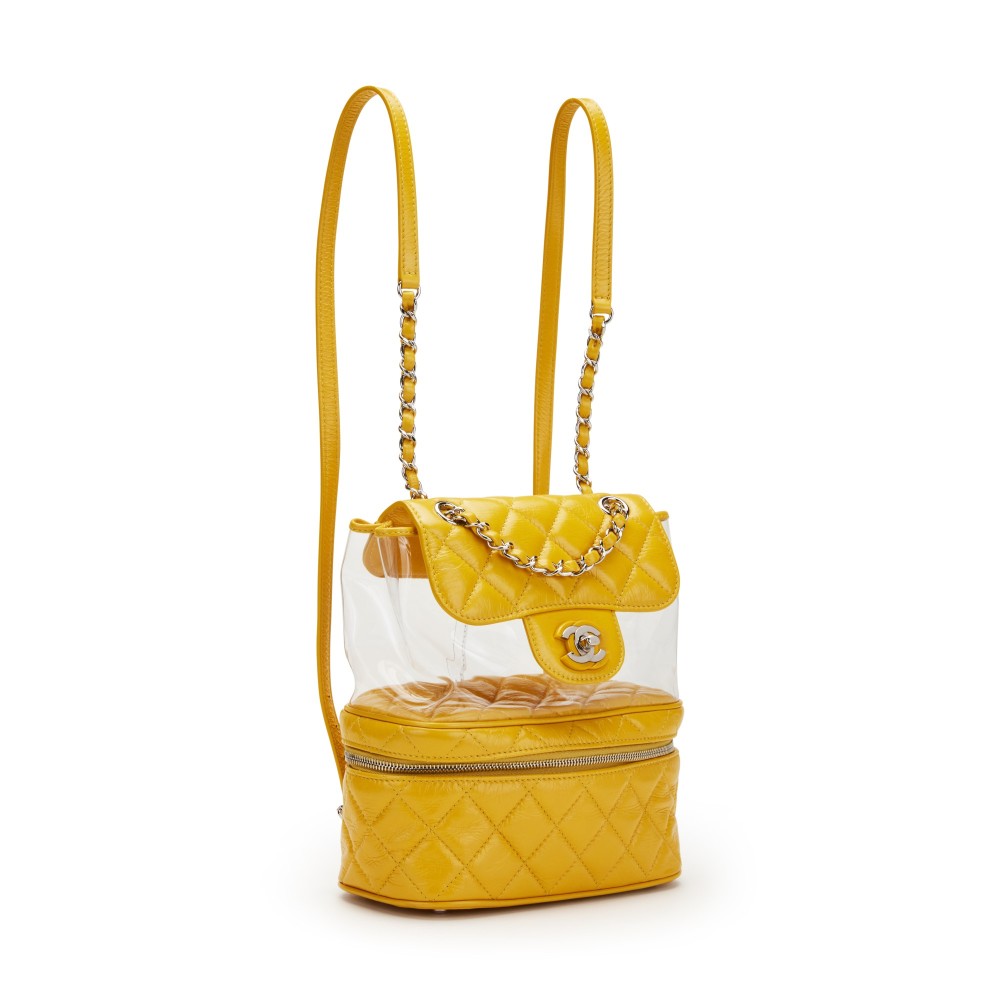 Chanel Yellow Quilted Aged Calfskin Leather & PVC Aquarium Backpack Silver Hardware, 2018
